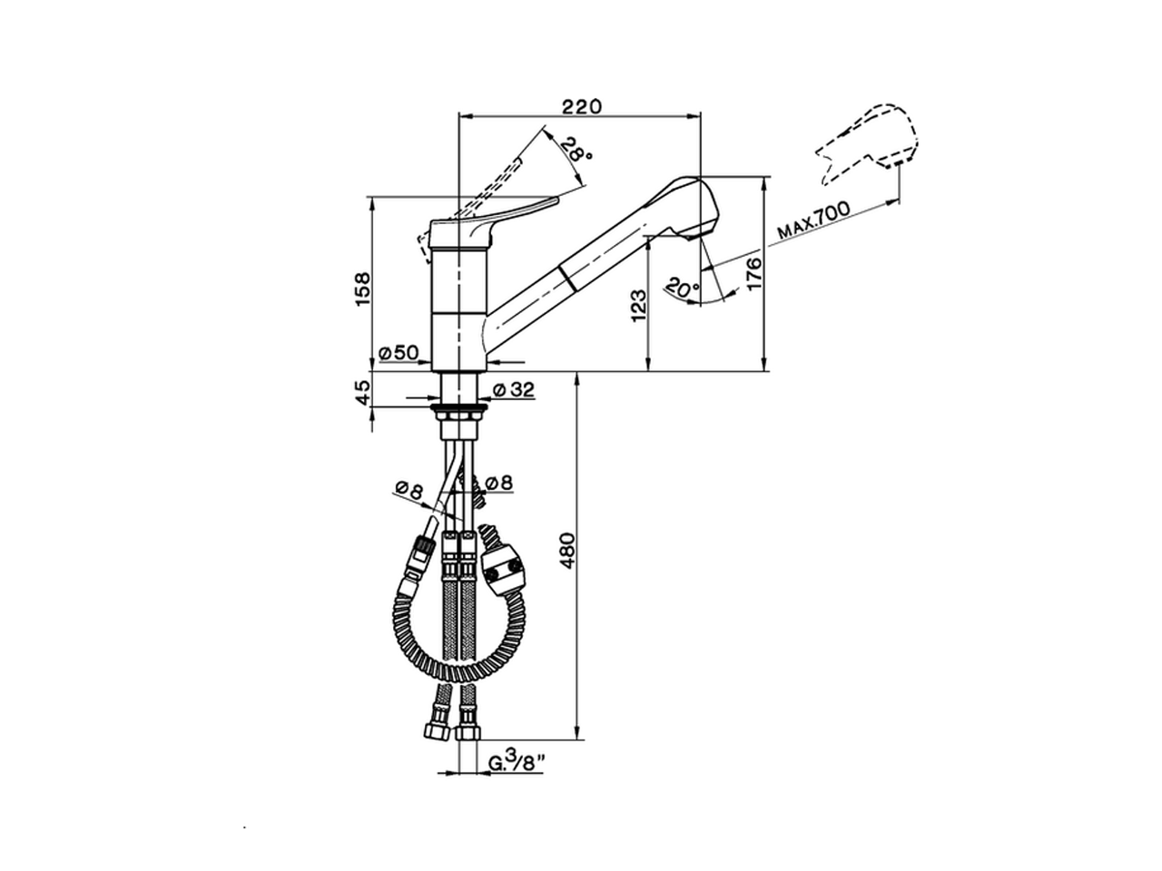 Single lever sink mixer with extrac.shower KITCHEN_FU002570